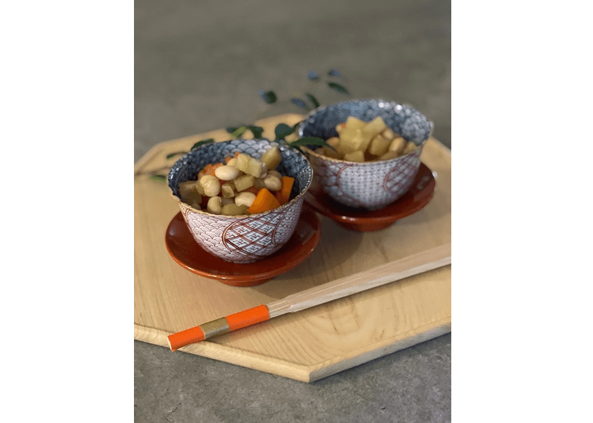 続いて、”大豆とじゃがいもとニンジンの煮物”です。