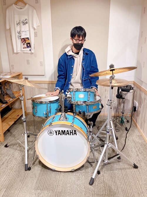生ドラムの試奏も! なかなか自宅で試すことができない楽器もたくさん並んでいます。