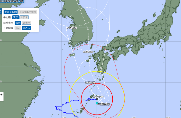 台風8号 13日午後静岡に上陸し関東縦断か?~関東の雨のピークは夕方から夜